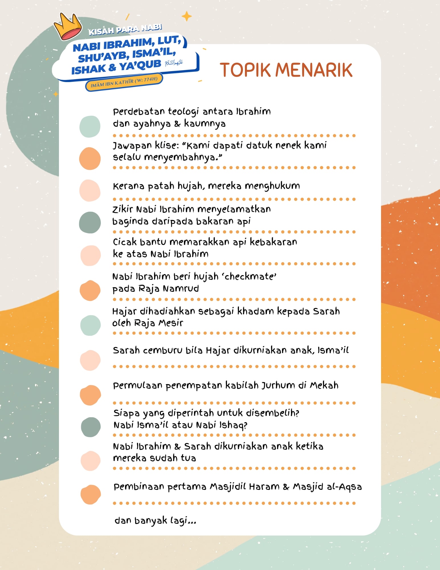 Buku ini merupakan siri terjemahan karya agung kitab al-Bidāyah wa al-Nihāyah karangan Imām Ismāʿīl bin Kathīr al-Dimashqī (Imām Ibn Kathīr). Ia menyajikan sirah enam orang Nabi yang saling berkait rapat: Nabi Ibrāhīm, Lūṭ, Shuʿayb, Ismāʿīl, Isḥāq, dan Yaʿqūb.