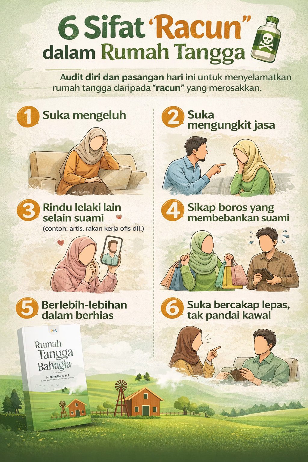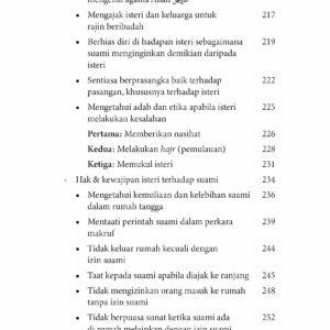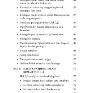 Daripada tips berhias untuk pasangan sehinggalah garis panduan menangani perpisahan berteraskan takwa, setiap bab disusun rapi untuk memastikan bahtera rumah tangga anda tidak karam dilanda badai syaitan yang sentiasa mahu memisahkan hubungan suci ini.